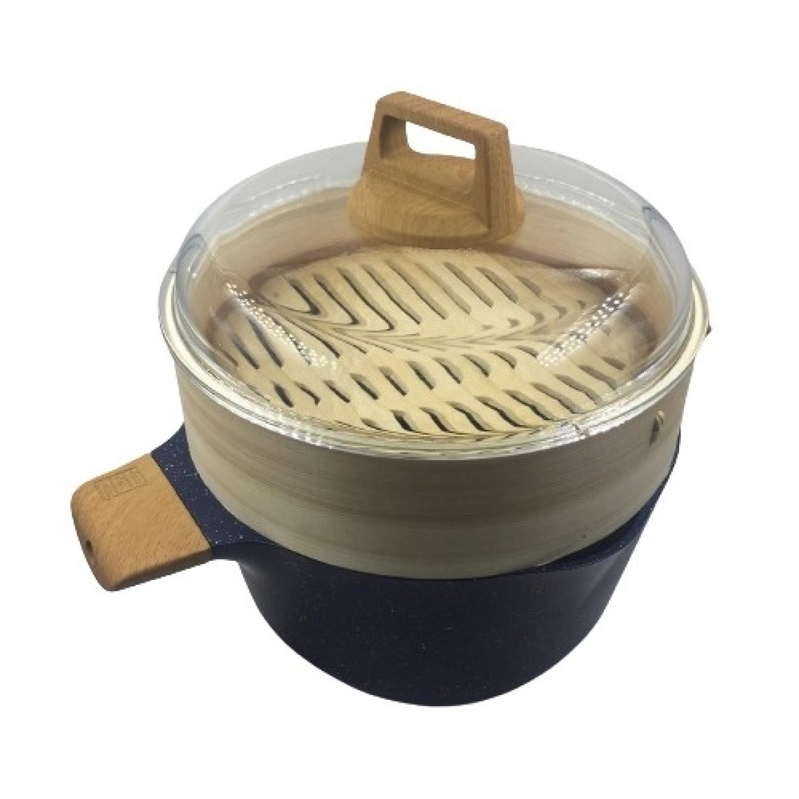 1 Caçarola c/ Tampa de Vidro + Escorredor de Bambu - 24cm